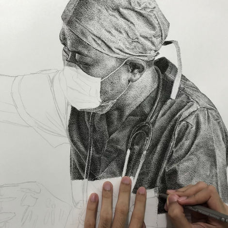 In Recovering System Security, the artist conveys his sentiments on reducing the level of HIV in the body. The recovery icon painted by the doctor is symbolic of the treatment that should be given to the patient consistently, followed by the chemical structure known as tenofovir reflects the medication used to produce protection against the disease as a result of developing an immune response to the virus. The cooperation of everyone is needed so that the disease does not continue to spread and give brighter hope to HIV/AIDS patients in the future.